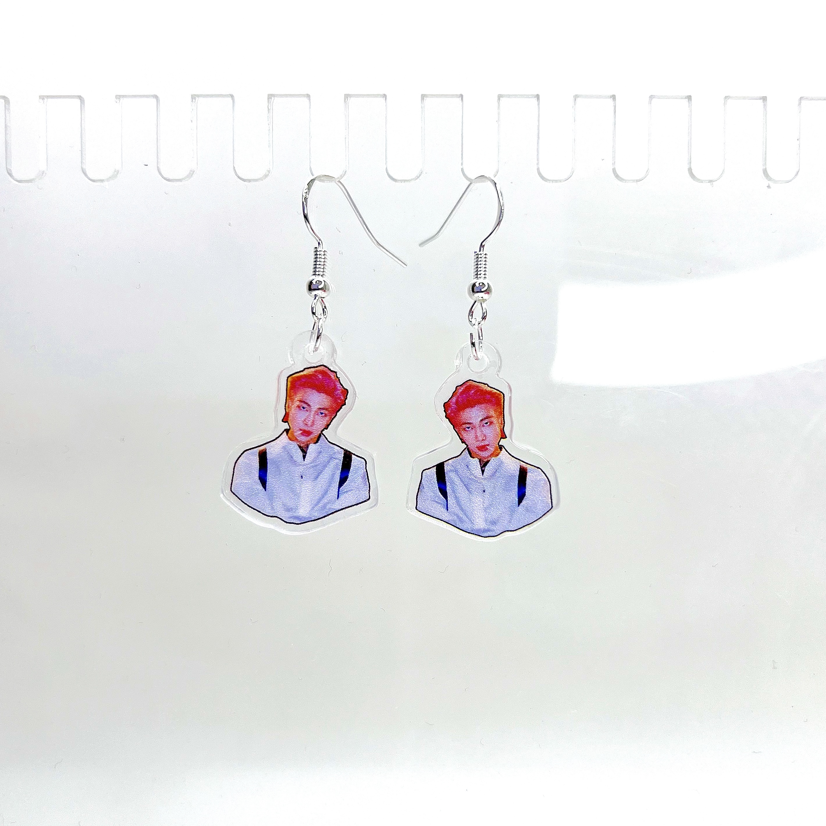 Серьги акриловые "BTS Чимин" (оранжевые \ красные волосы, подтяжки)