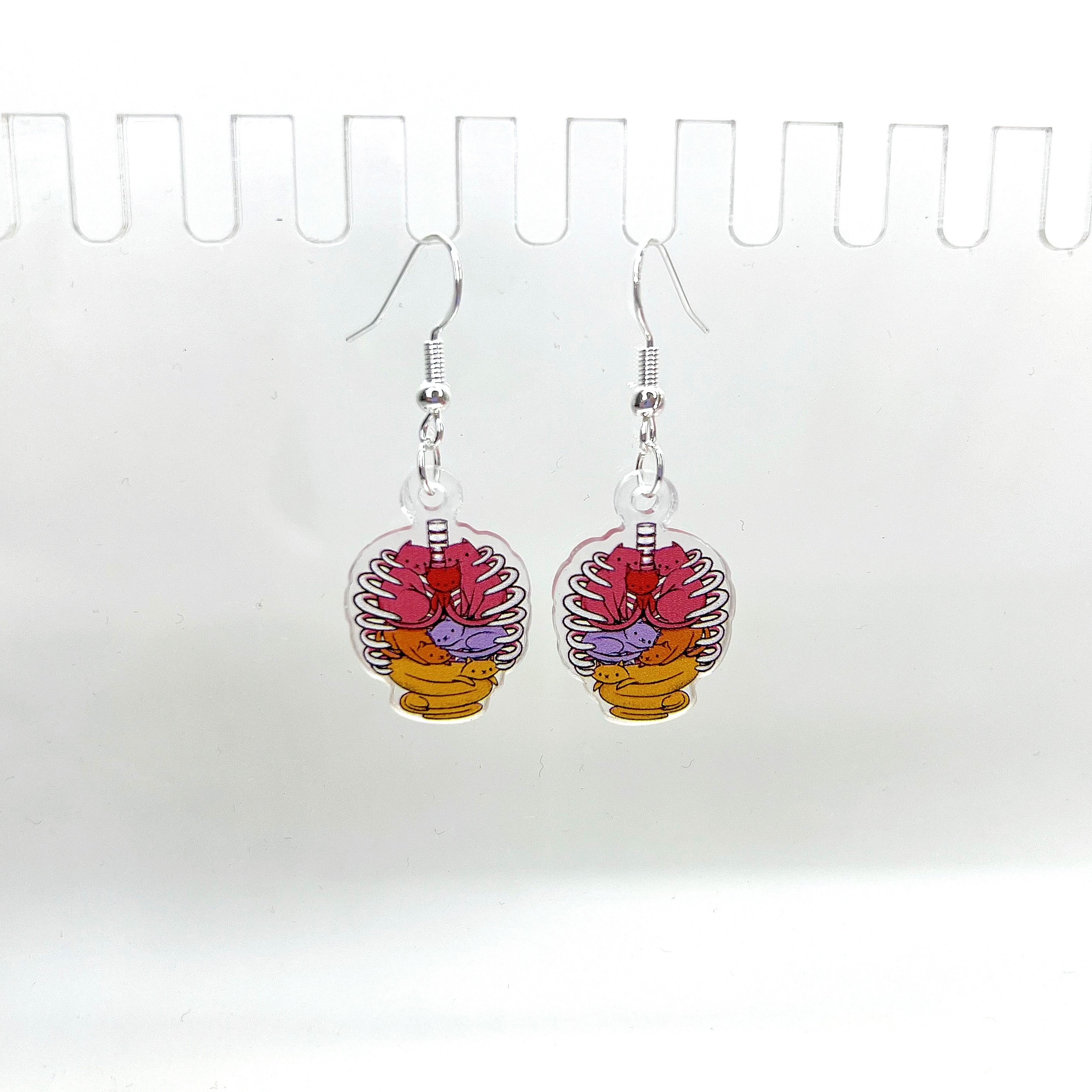 Серьги акриловые "Скелет-котики" (ребра, кости)
